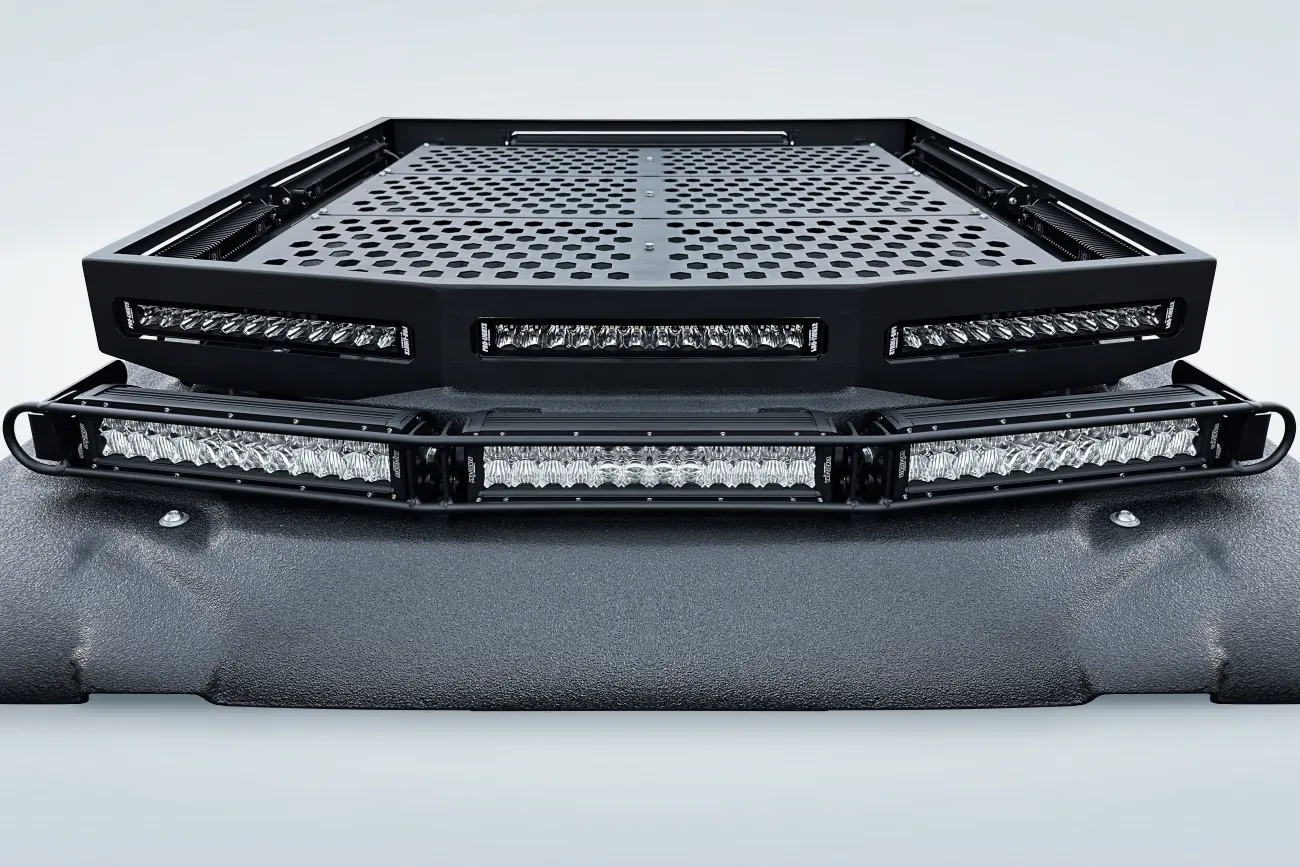 - (3) SR-12” Single Row Front LED Light Bars with Metal Guard (light bars are angled for wide light pattern)