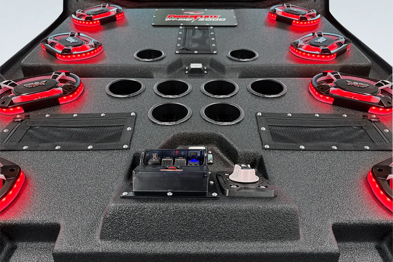 - (1) 2000.4 ProBox PowerPlate amp, 1000 Watts RMS on Audio Roof, 1000 Watts RMS on 10” Sub Enclosure