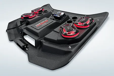 The ProBox 6x9 component speakers have been designed without a center pole behind the mid/tweeter. Instead, the mid/tweeter are suspended above the cone, making the 6x9 a true woofer with excellent bass response. This design also allowed us to mount the optional waterproof RGB LED circuit board behind the mid/tweeter. A reflective coating on the cone enhances the colors from the RGB LED circuit board, creating most impressive results.