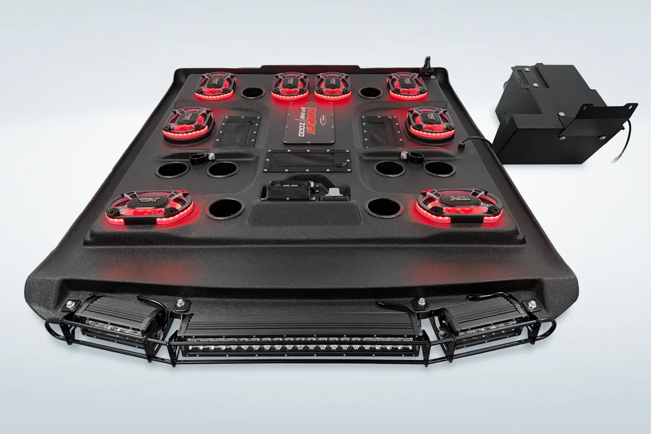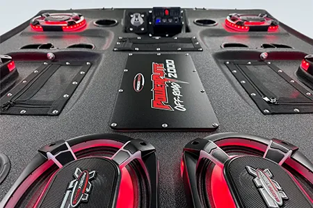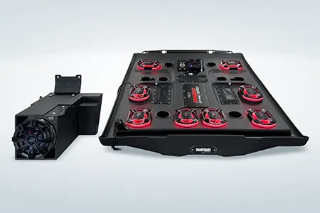 The ProBox 6x9 component speakers have been designed without a center pole behind the mid/tweeter. Instead, the mid/tweeter are suspended above the cone, making the 6x9 a true woofer with excellent bass response. This design also allowed us to mount the optional waterproof RGB LED circuit board behind the mid/tweeter. A reflective coating on the cone enhances the colors from the RGB LED circuit board, creating most impressive results.