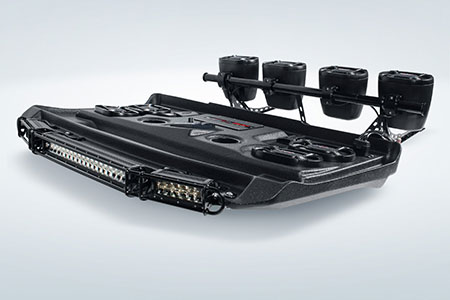 This photo shows an example of the beam spread of a tri-light LED configuration. Each LED bar features a double row of 5 watt Phillips LEDs. The flood part of the combo pattern delivers close range illumination, and the spotlight part delivers the extreme distance illumination. Click the image to enlarge.