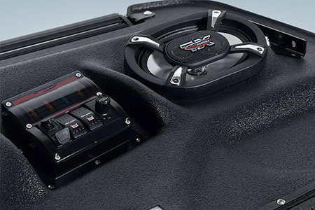 The specific design of our formed fiberglass top, with its engineered air space cavity and the 6"x9" "injection woven" woofer with aluminum dome tweeter built-in 2-way crossovers ensures greater clarity.
