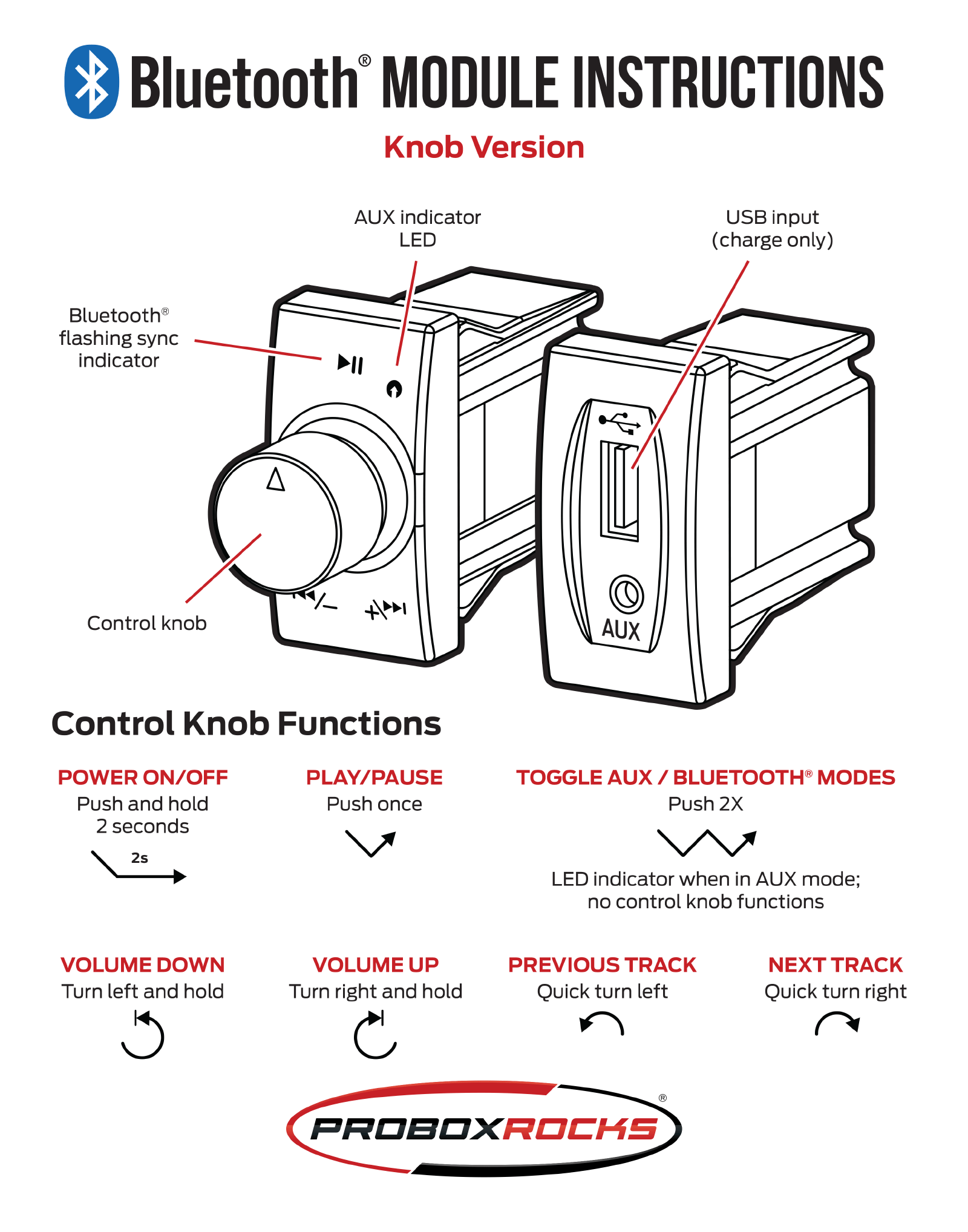 The PBR2000.2 is a revolutionary new product that provides a complete solution for streaming amplified Bluetooth audio from your mobile device to your off-road ProBox tower speakers. The kit includes a 2000 watt amp, Bluetooth® and USB/AUX modules that pop into any standard rocker switch slot, fuse holder, and all the wiring you will need.