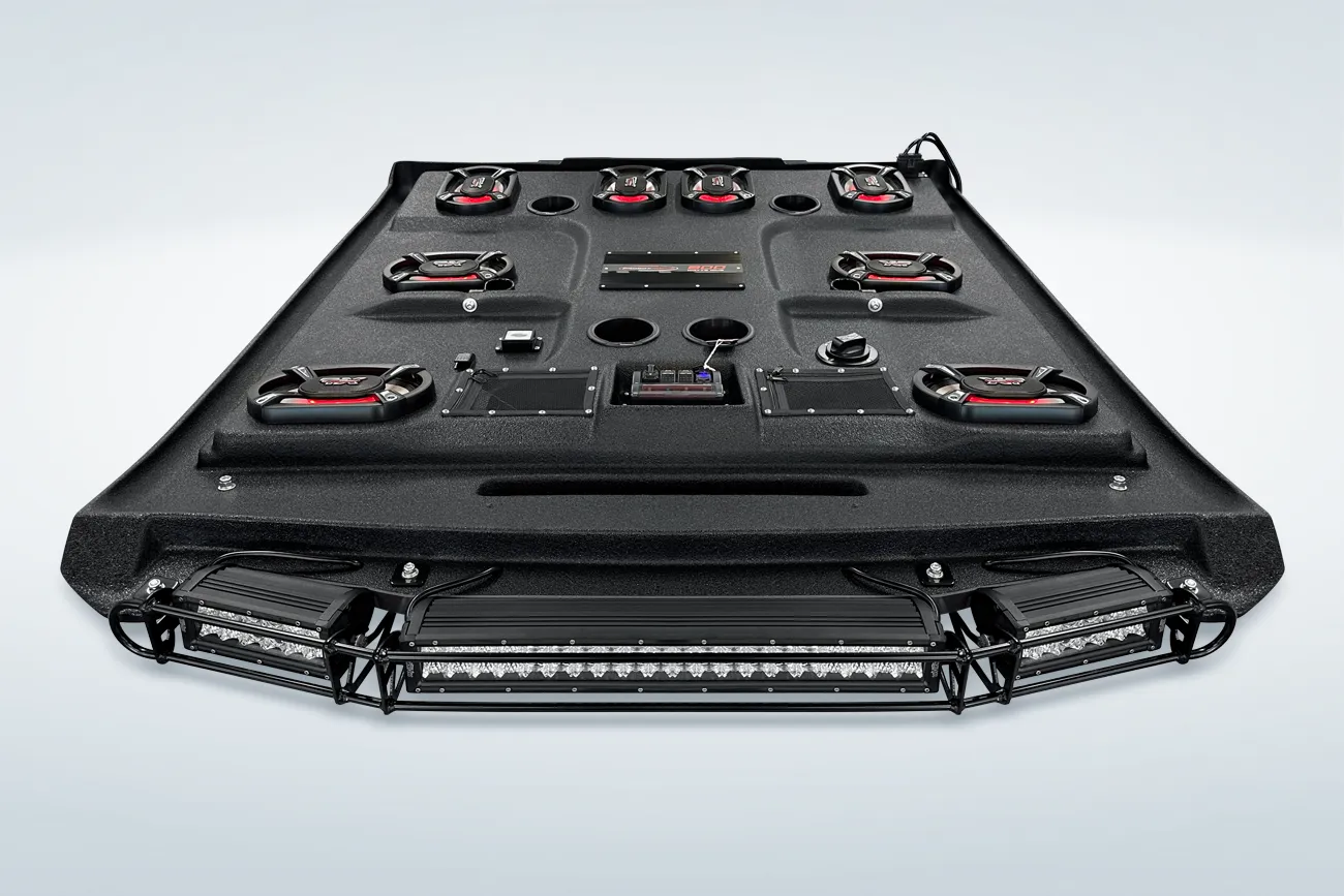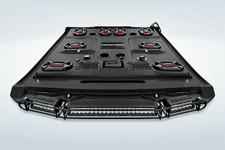 - (1) 6"-20"-6" double tow light bar with metal front grill