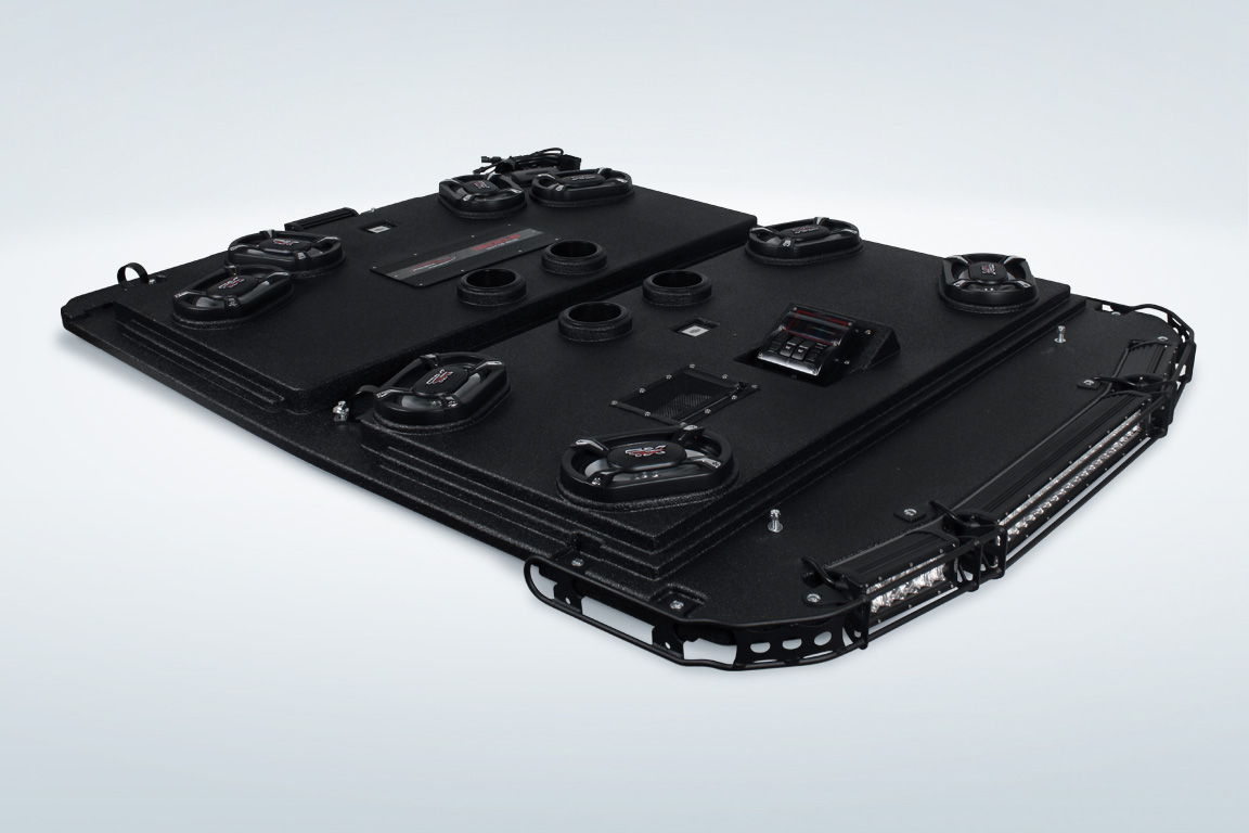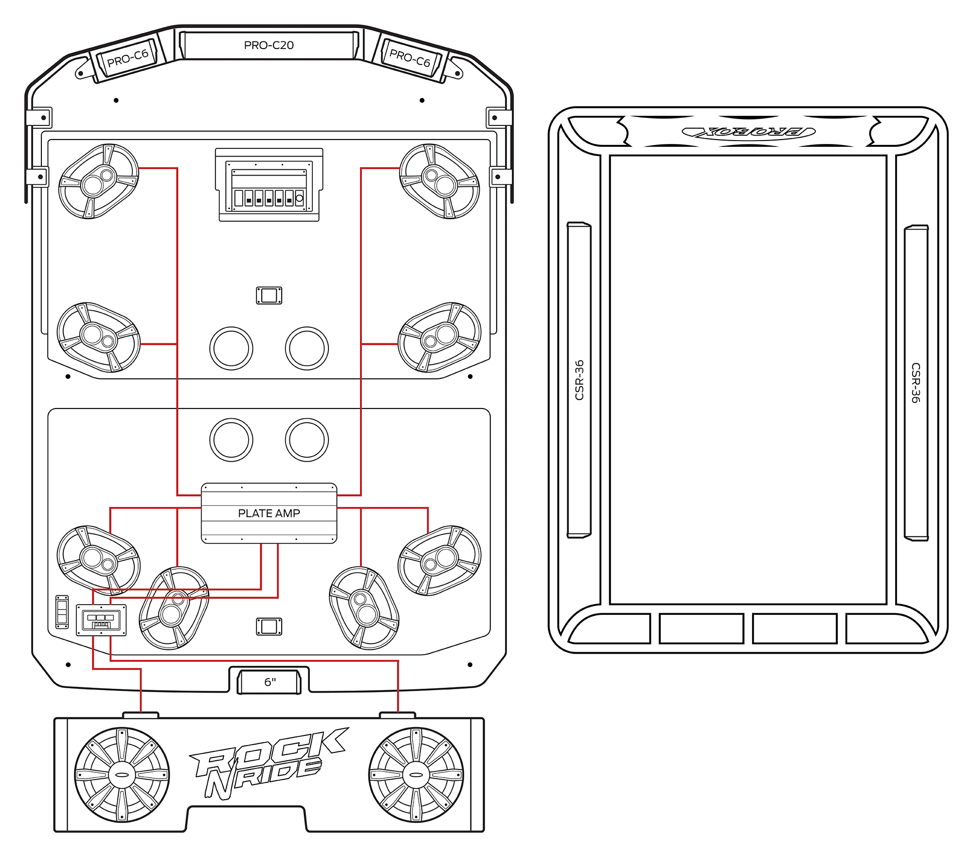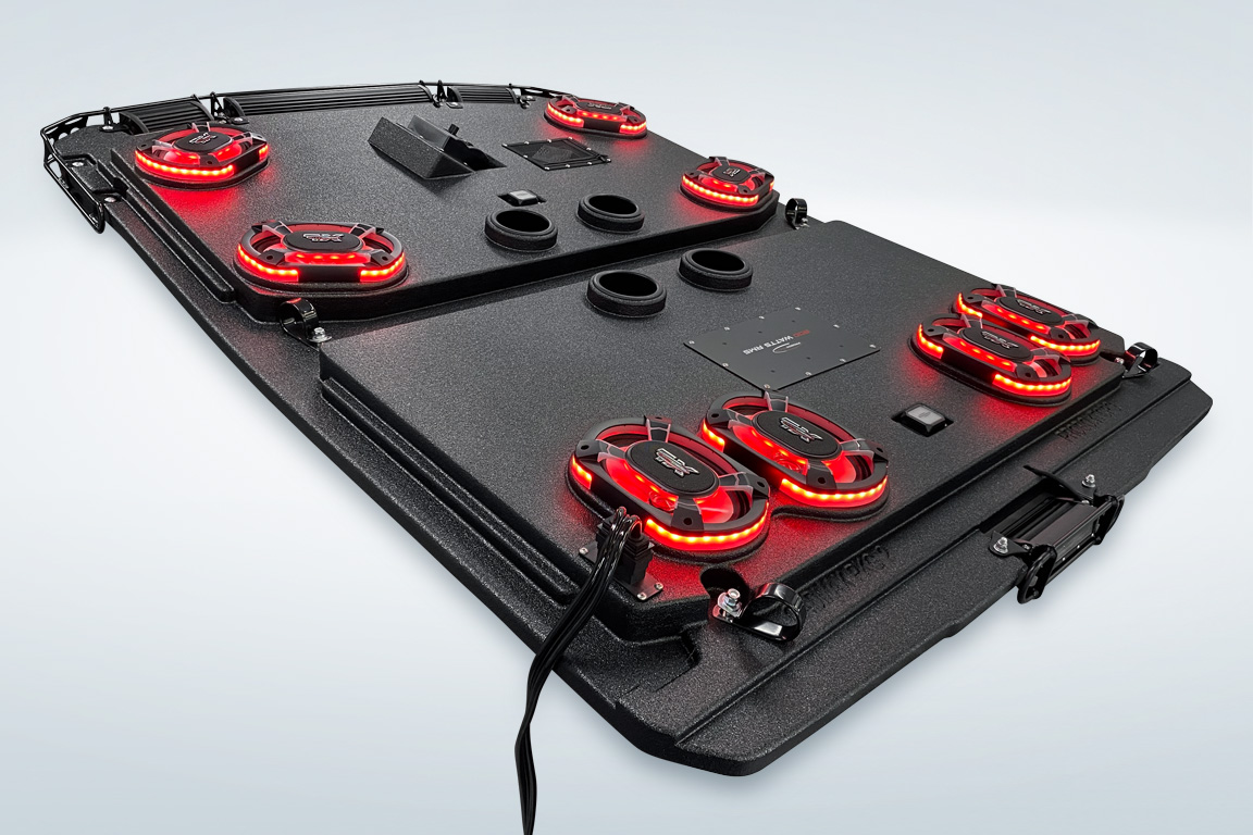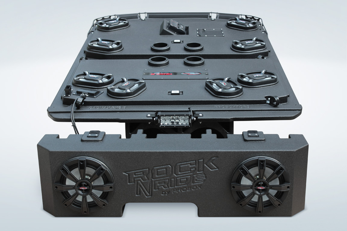 The ProBox 6x9 component speakers have been designed without a center pole behind the mid/tweeter. Instead, the mid/tweeter are suspended above the cone, making the 6x9 a true woofer with excellent bass response. This design also allowed us to mount the optional waterproof RGB LED circuit board behind the mid/tweeter. A reflective coating on the cone enhances the colors from the RGB LED circuit board, creating most impressive results.