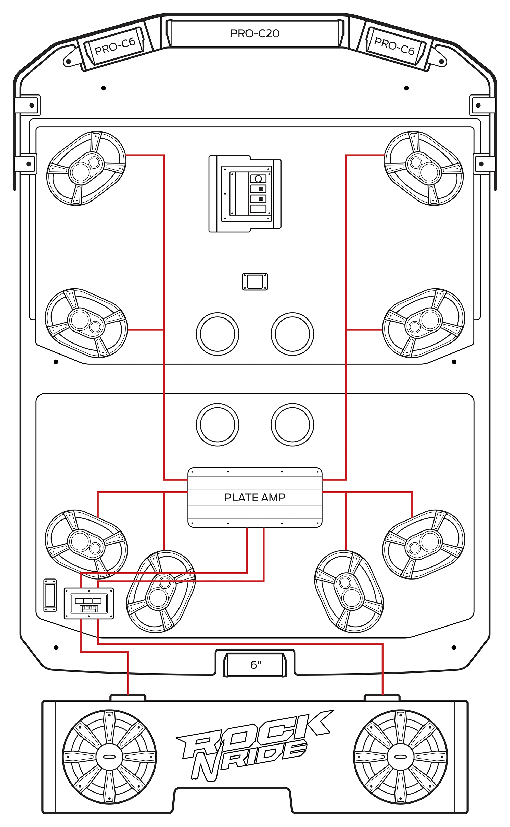 - 4-way high performance, high efficiency 6” x 9” speakers