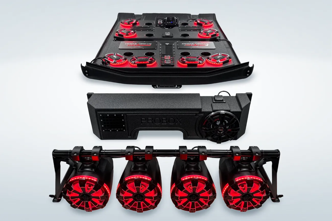 With the GLO•PRO app, you can use your smartphone to simultaneously control the colors and flash pattern of the LEDs in your ProBox RGB tower speakers, RGB component speakers, and RGB wheel well kit. The GLO•PRO app is available for free from the iTunes App Store and Google Play.