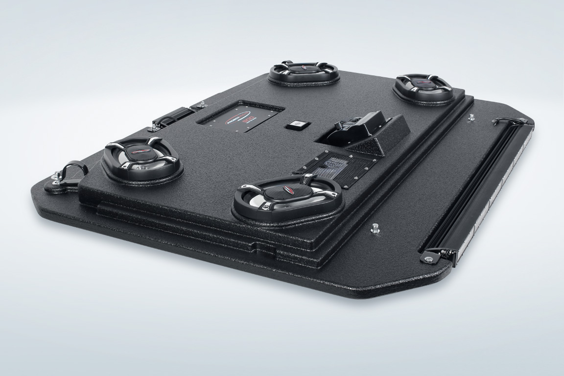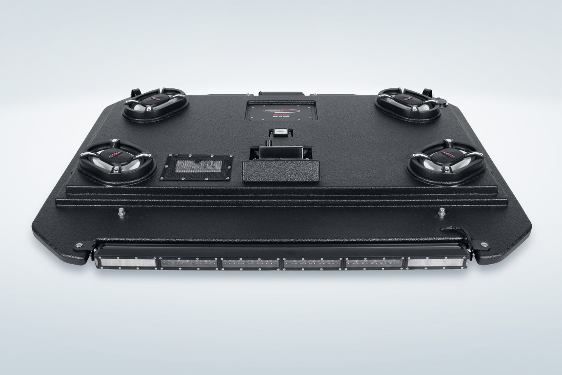 The ProBox 6x9 component speakers have been designed without a center pole behind the mid/tweeter. Instead, the mid/tweeter are suspended above the cone, making the 6x9 a true woofer with excellent bass response. This design also allowed us to mount the optional waterproof RGB LED circuit board behind the mid/tweeter. A reflective coating on the cone enhances the colors from the RGB LED circuit board, creating most impressive results.