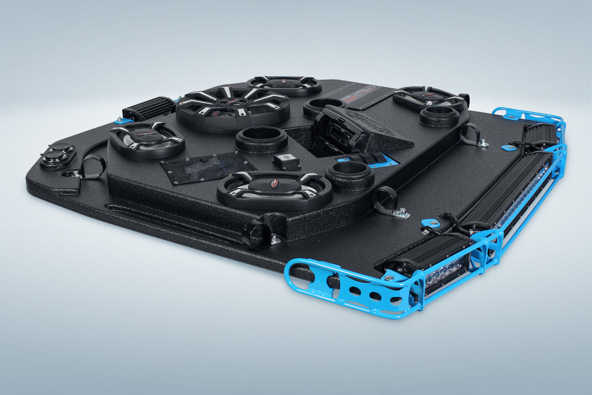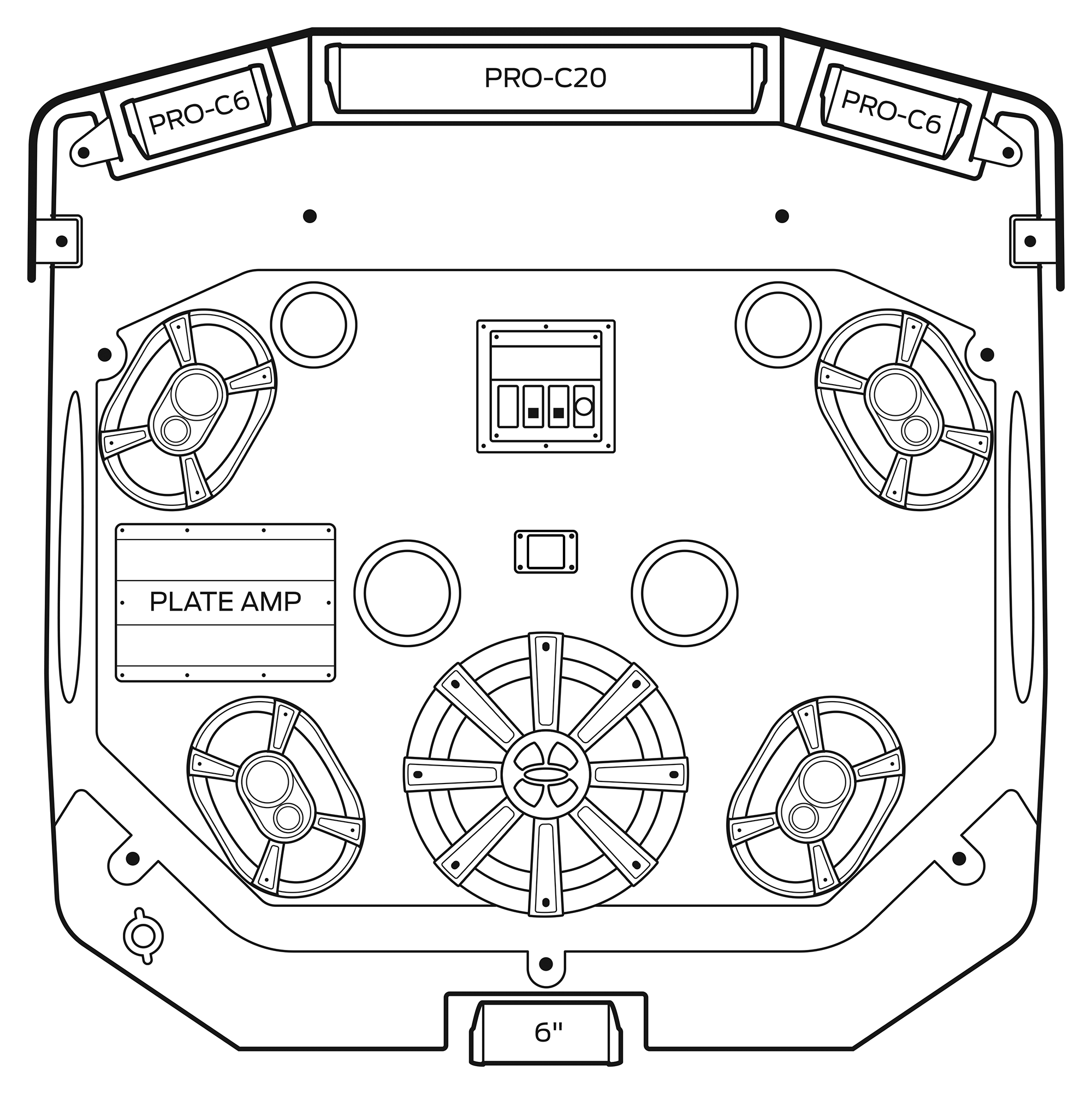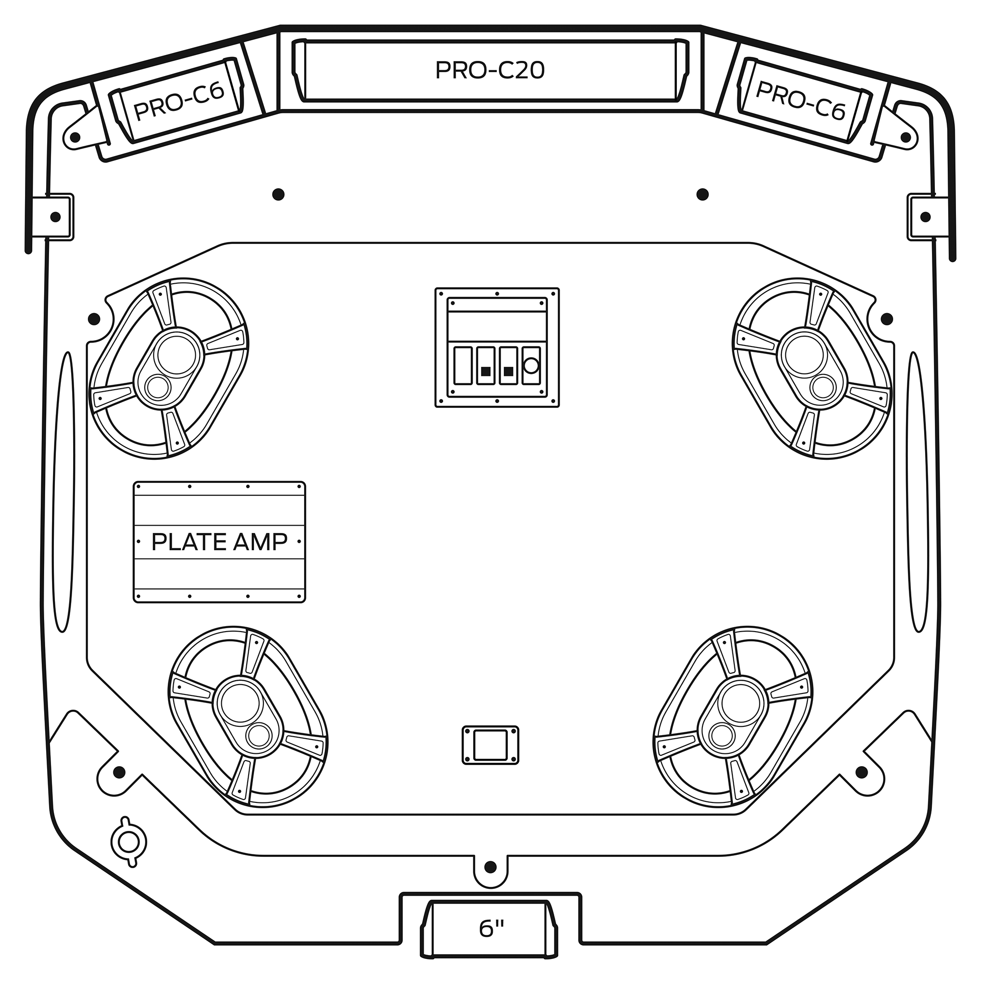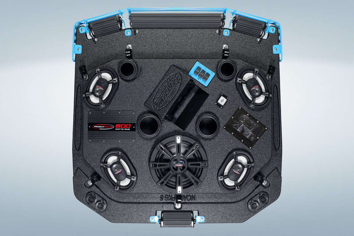 The ProBox 6x9 component speakers have been designed without a center pole behind the mid/tweeter. Instead, the mid/tweeter are suspended above the cone, making the 6x9 a true woofer with excellent bass response. This design also allowed us to mount the optional waterproof RGB LED circuit board behind the mid/tweeter. A reflective coating on the cone enhances the colors from the RGB LED circuit board, creating most impressive results.
