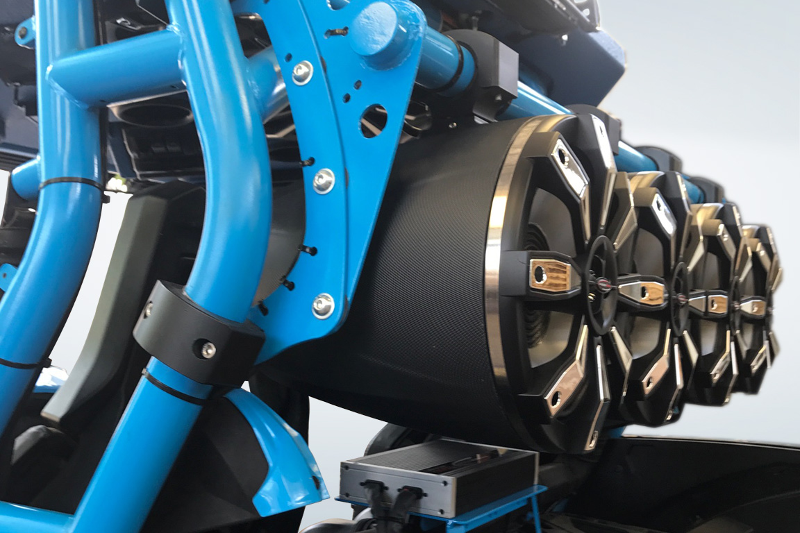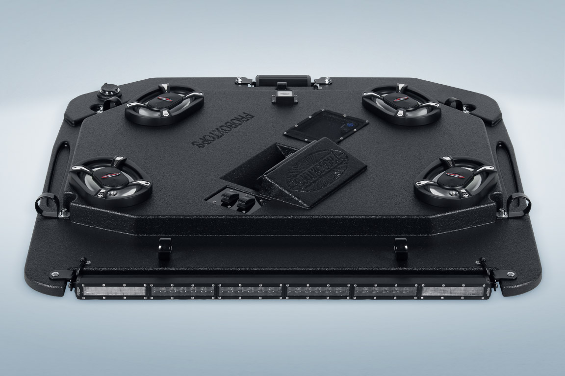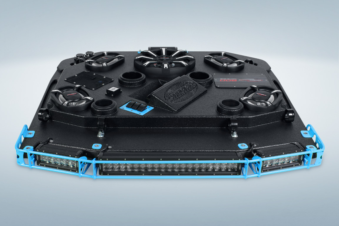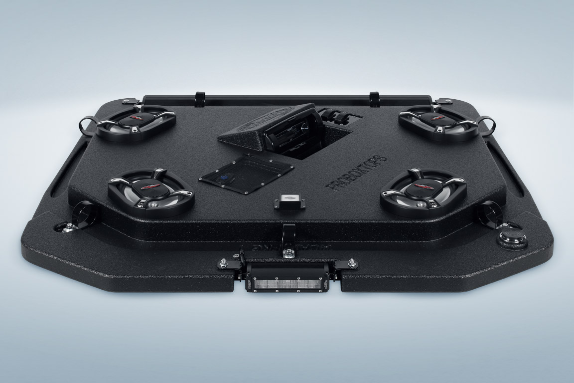 The ProBox 6x9 component speakers have been designed without a center pole behind the mid/tweeter. Instead, the mid/tweeter are suspended above the cone, making the 6x9 a true woofer with excellent bass response. This design also allowed us to mount the optional waterproof RGB LED circuit board behind the mid/tweeter. A reflective coating on the cone enhances the colors from the RGB LED circuit board, creating most impressive results.