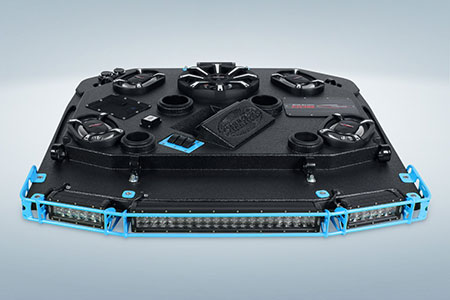 This photo shows an example of the beam spread of a tri-light LED configuration. Each LED bar features a double row of 5 watt Phillips LEDs. The flood part of the combo pattern delivers close range illumination, and the spotlight part delivers the extreme distance illumination. Click the image to enlarge.
