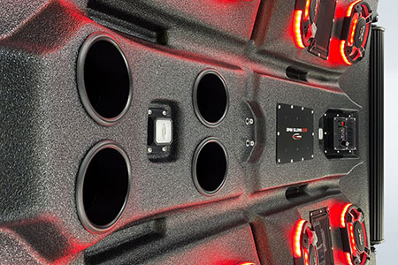 The ProBox 6x9 component speakers have been designed without a center pole behind the mid/tweeter. Instead, the mid/tweeter are suspended above the cone, making the 6x9 a true woofer with excellent bass response. This design also allowed us to mount the optional waterproof RGB LED circuit board behind the mid/tweeter. A reflective coating on the cone enhances the colors from the RGB LED circuit board, creating most impressive results.