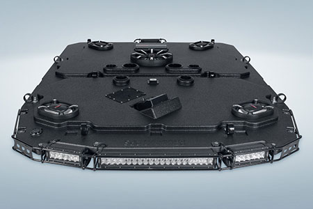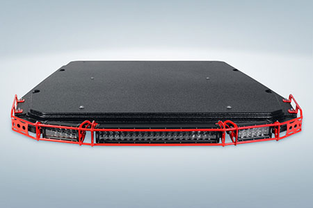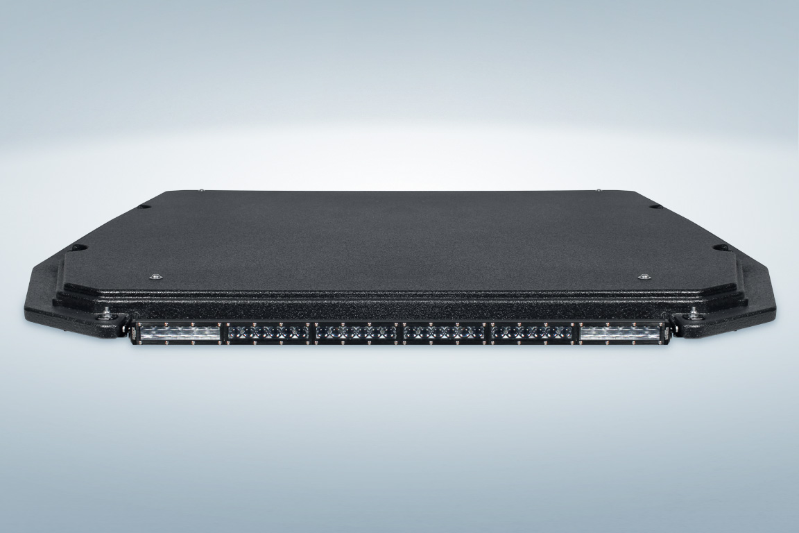 This photo shows an example of the beam spread of a tri-light LED configuration. Each LED bar features a double row of 5 watt Phillips LEDs. The flood part of the combo pattern delivers close range illumination, and the spotlight part delivers the extreme distance illumination. Click the image to enlarge.