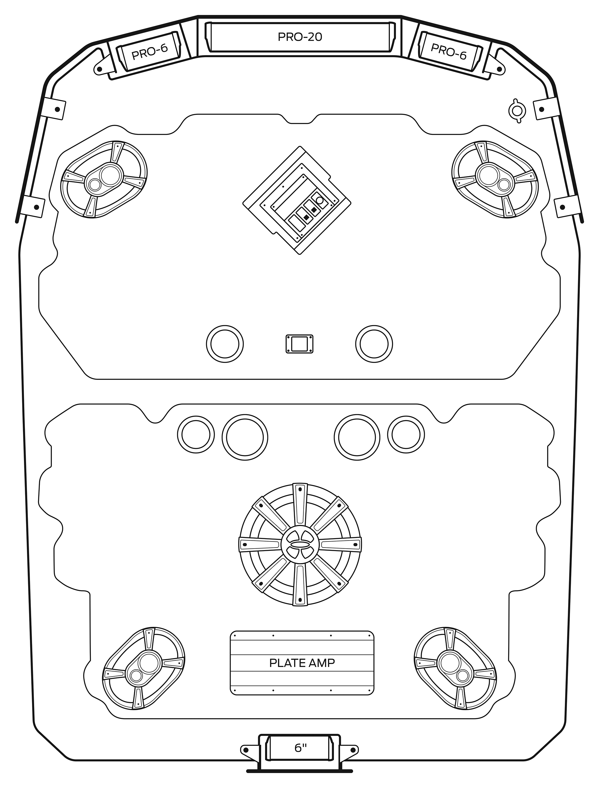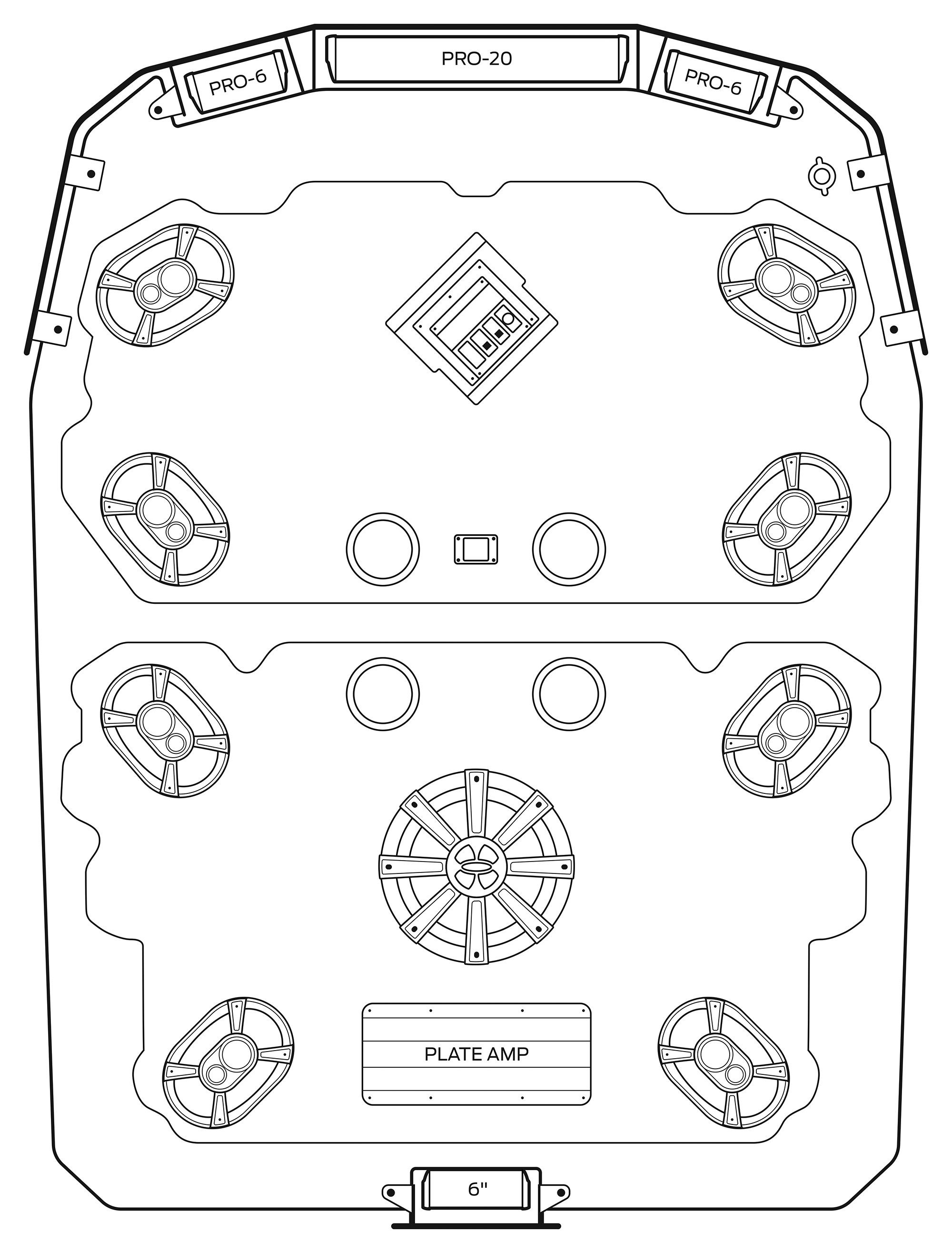 - 4-way high performance, high efficiency 6” x 9” speakers