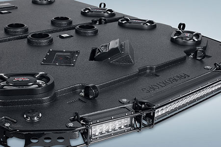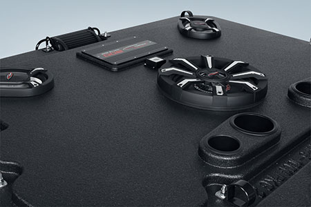 The ProBox 6x9 component speakers have been designed without a center pole behind the mid/tweeter. Instead, the mid/tweeter are suspended above the cone, making the 6x9 a true woofer with excellent bass response. This design also allowed us to mount the optional waterproof RGB LED circuit board behind the mid/tweeter. A reflective coating on the cone enhances the colors from the RGB LED circuit board, creating most impressive results.