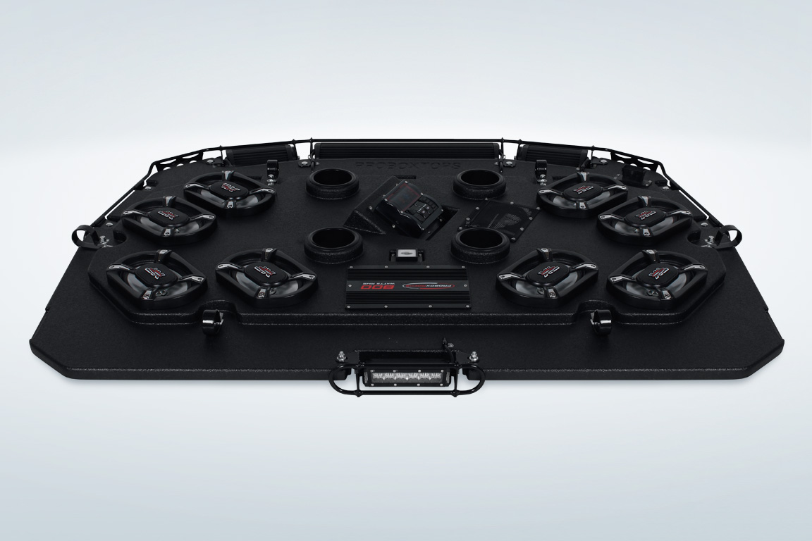 The ProBox 6x9 component speakers have been designed without a center pole behind the mid/tweeter. Instead, the mid/tweeter are suspended above the cone, making the 6x9 a true woofer with excellent bass response. This design also allowed us to mount the optional waterproof RGB LED circuit board behind the mid/tweeter. A reflective coating on the cone enhances the colors from the RGB LED circuit board, creating most impressive results.