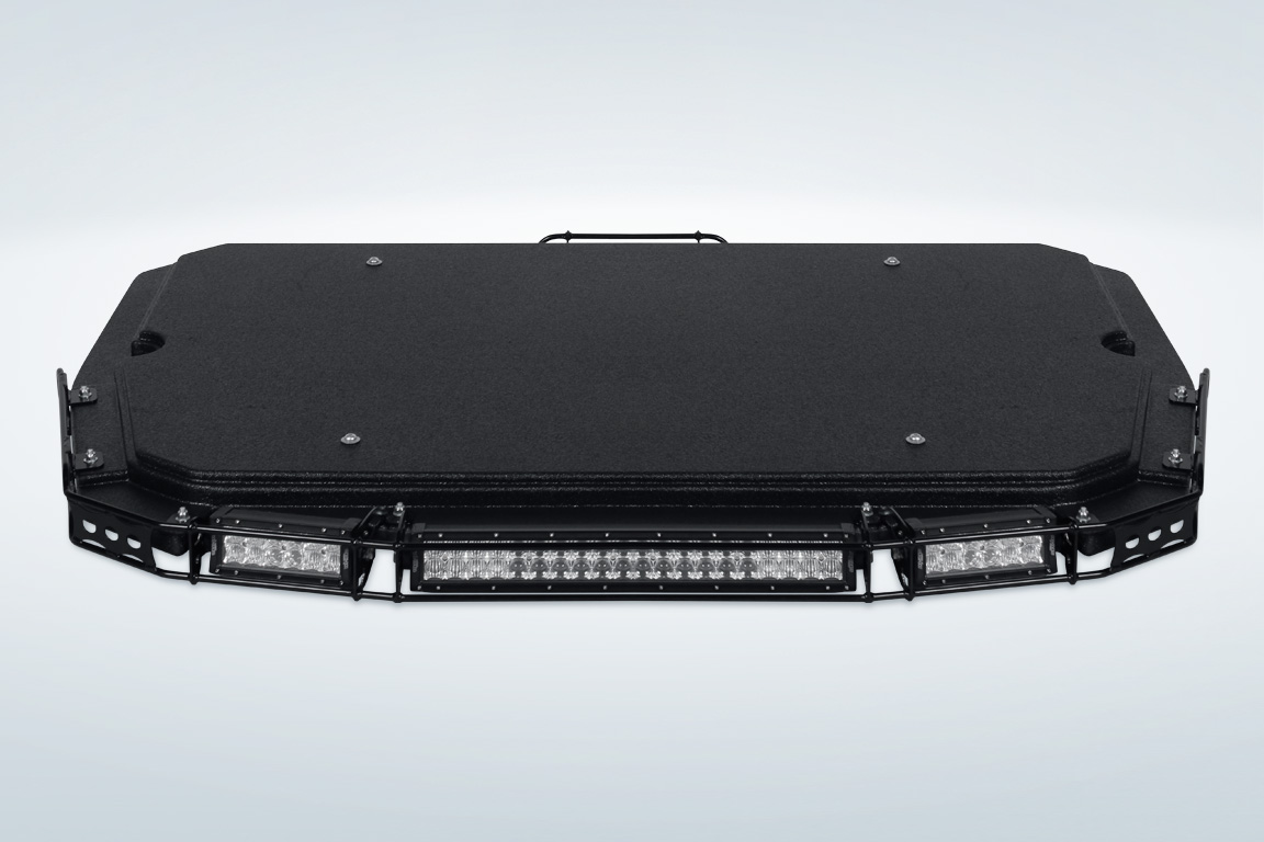 This photo shows an example of the beam spread of a tri-light LED configuration. Each LED bar features a double row of 5 watt Phillips LEDs. The flood part of the combo pattern delivers close range illumination, and the spotlight part delivers the extreme distance illumination. Click the image to enlarge.