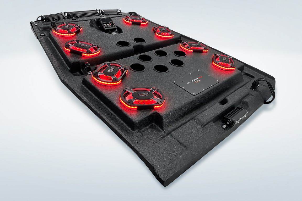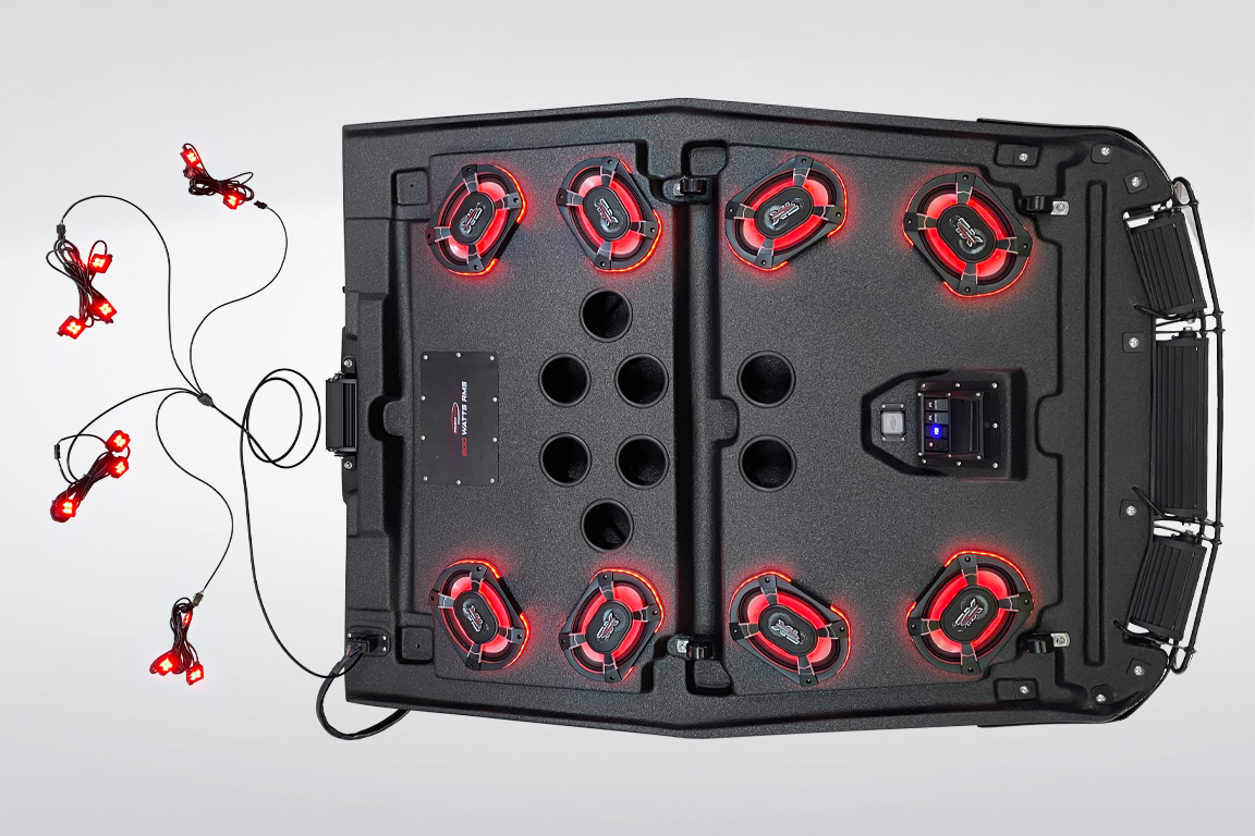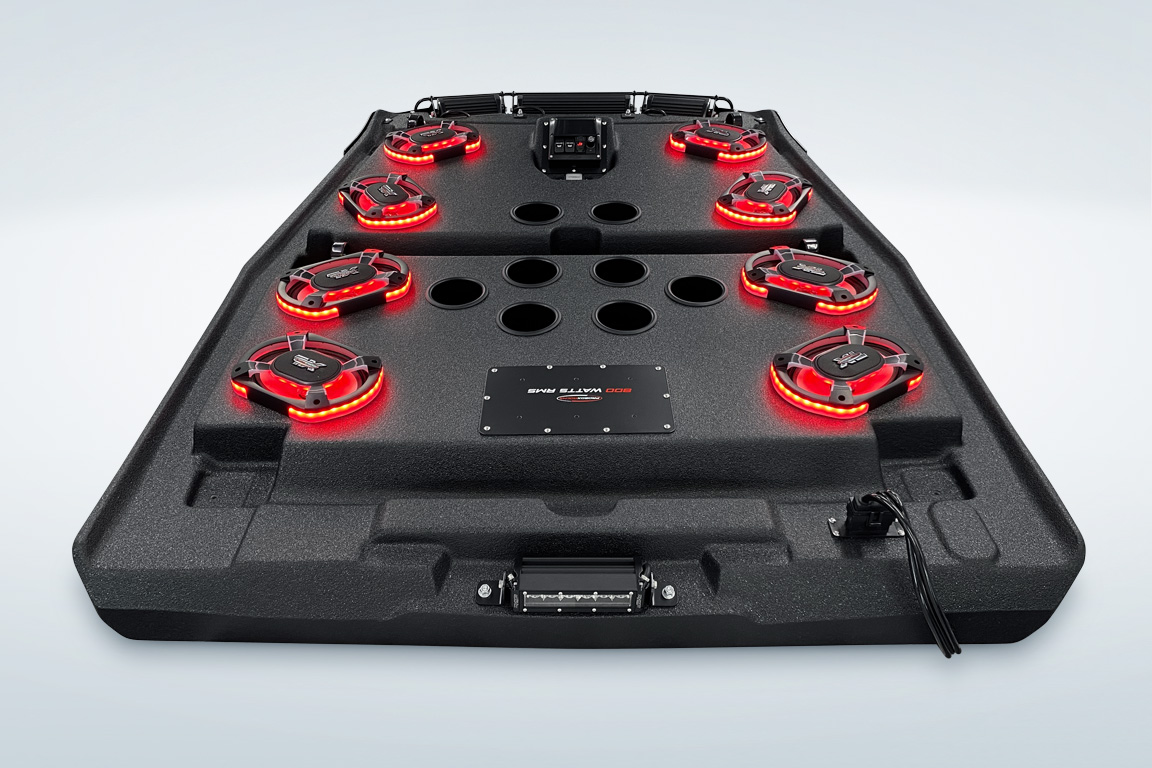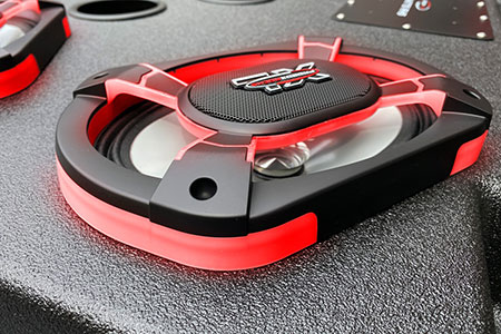 The ProBox 6x9 component speakers have been designed without a center pole behind the mid/tweeter. Instead, the mid/tweeter are suspended above the cone, making the 6x9 a true woofer with excellent bass response. This design also allowed us to mount the optional waterproof RGB LED circuit board behind the mid/tweeter. A reflective coating on the cone enhances the colors from the RGB LED circuit board, creating most impressive results.