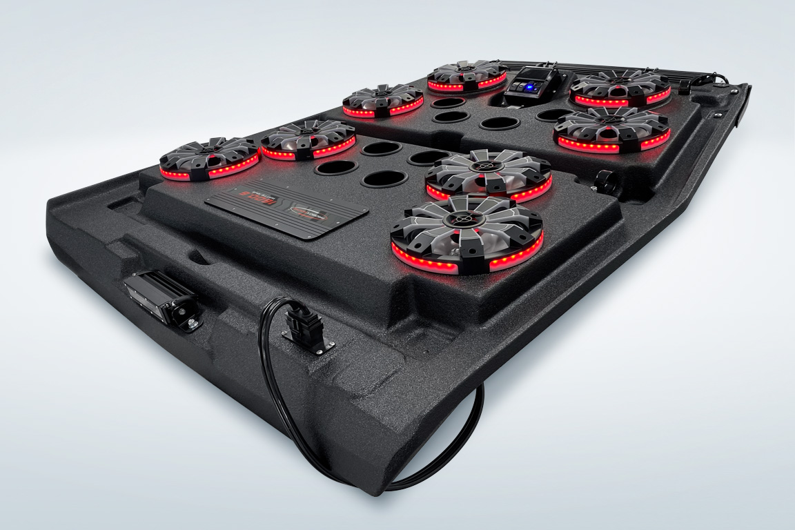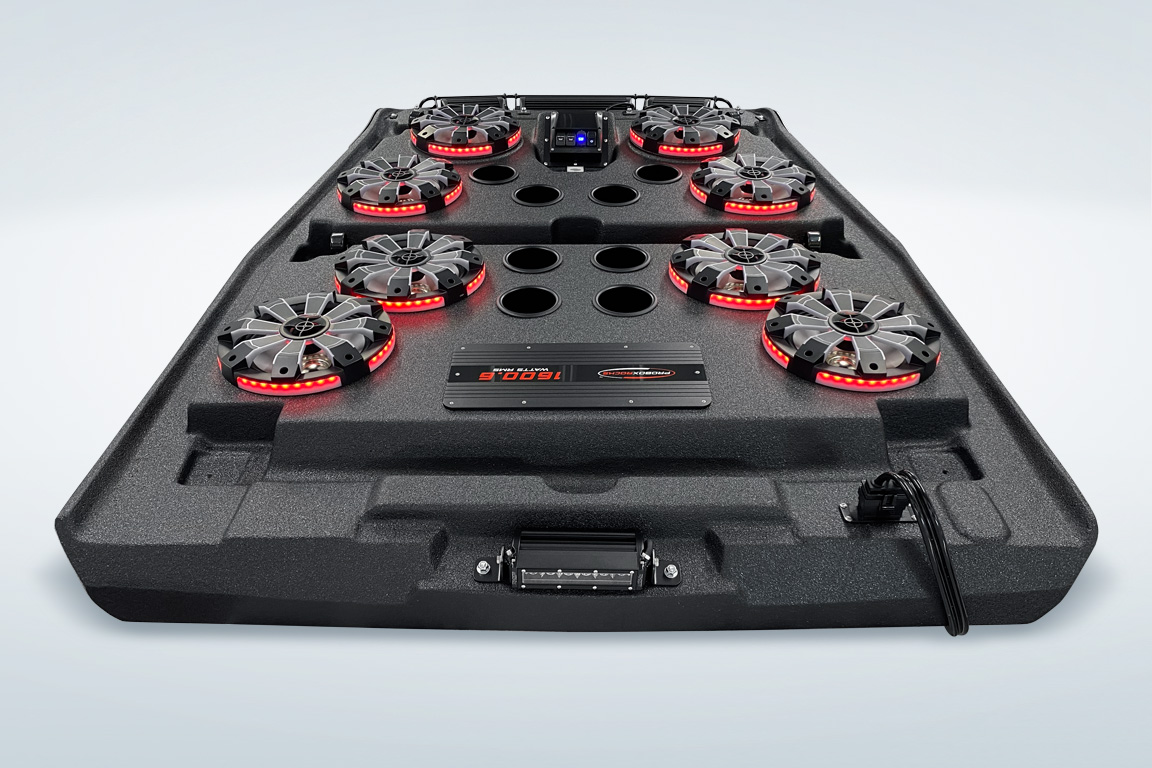 The ProBox 6x9 component speakers have been designed without a center pole behind the mid/tweeter. Instead, the mid/tweeter are suspended above the cone, making the 6x9 a true woofer with excellent bass response. This design also allowed us to mount the optional waterproof RGB LED circuit board behind the mid/tweeter. A reflective coating on the cone enhances the colors from the RGB LED circuit board, creating most impressive results.