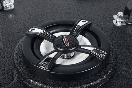 Our marine components withstand the deteriorating effects of water, salt, and UV rays, thanks to UV-resistant grilles, stainless steel hardware, plated speaker terminals, and rubber surrounds. Built-in 2-way crossovers ensure greater clarity.