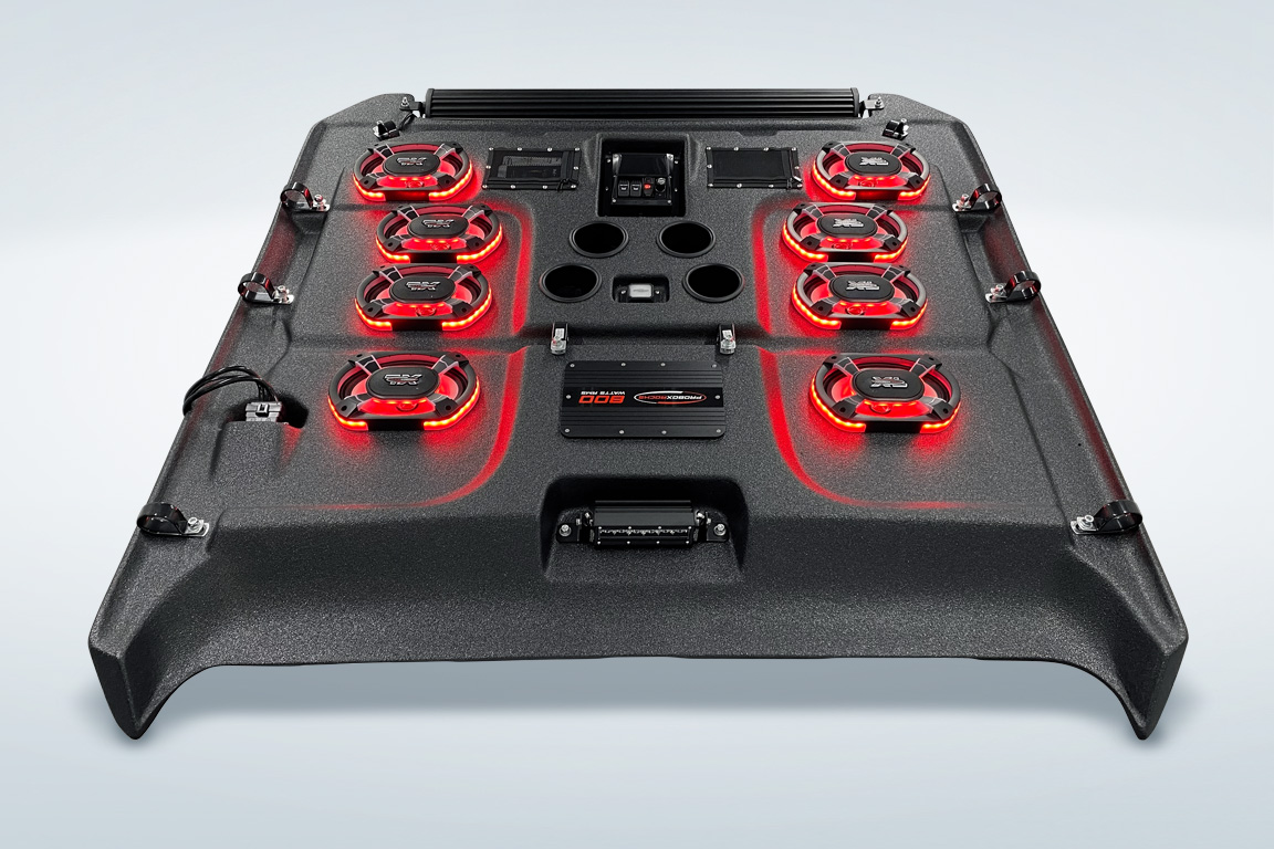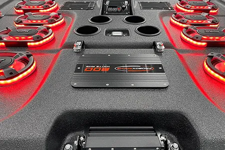 The ProBox 6x9 component speakers have been designed without a center pole behind the mid/tweeter. Instead, the mid/tweeter are suspended above the cone, making the 6x9 a true woofer with excellent bass response. This design also allowed us to mount the optional waterproof RGB LED circuit board behind the mid/tweeter. A reflective coating on the cone enhances the colors from the RGB LED circuit board, creating most impressive results.