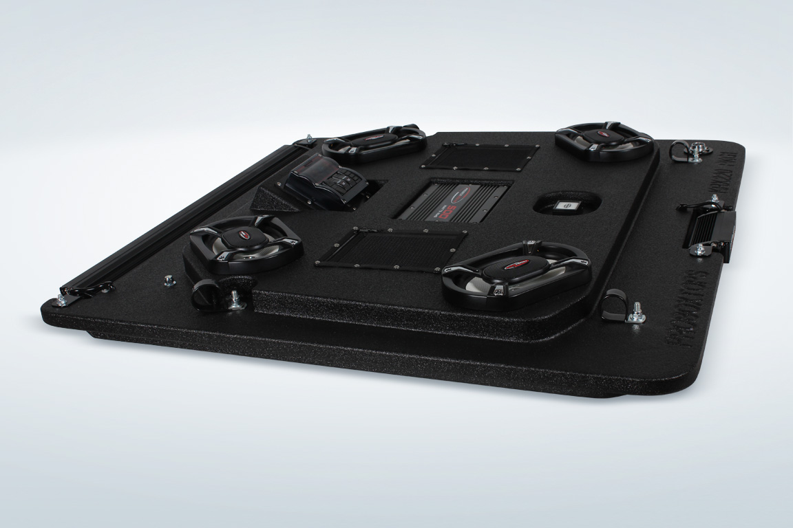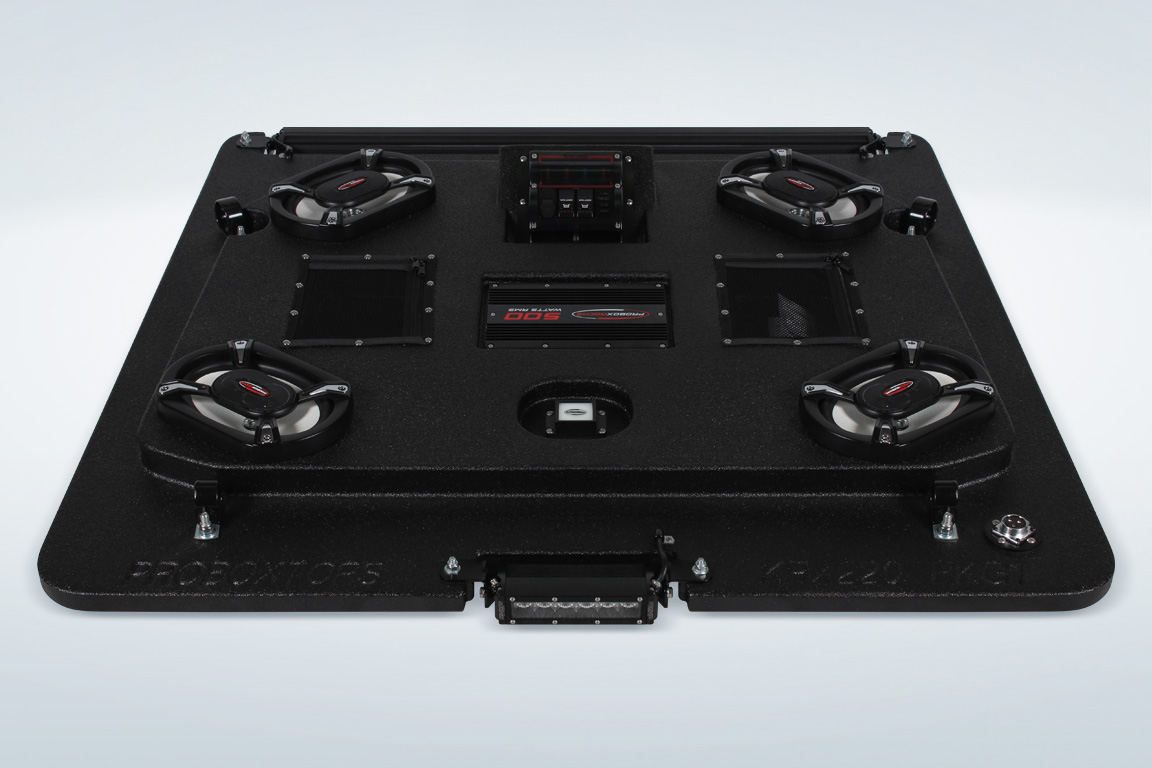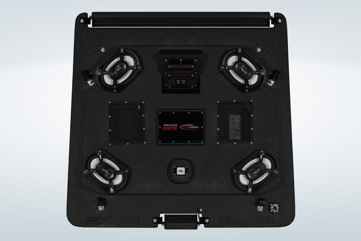 The ProBox 6x9 component speakers have been designed without a center pole behind the mid/tweeter. Instead, the mid/tweeter are suspended above the cone, making the 6x9 a true woofer with excellent bass response. This design also allowed us to mount the optional waterproof RGB LED circuit board behind the mid/tweeter. A reflective coating on the cone enhances the colors from the RGB LED circuit board, creating most impressive results.