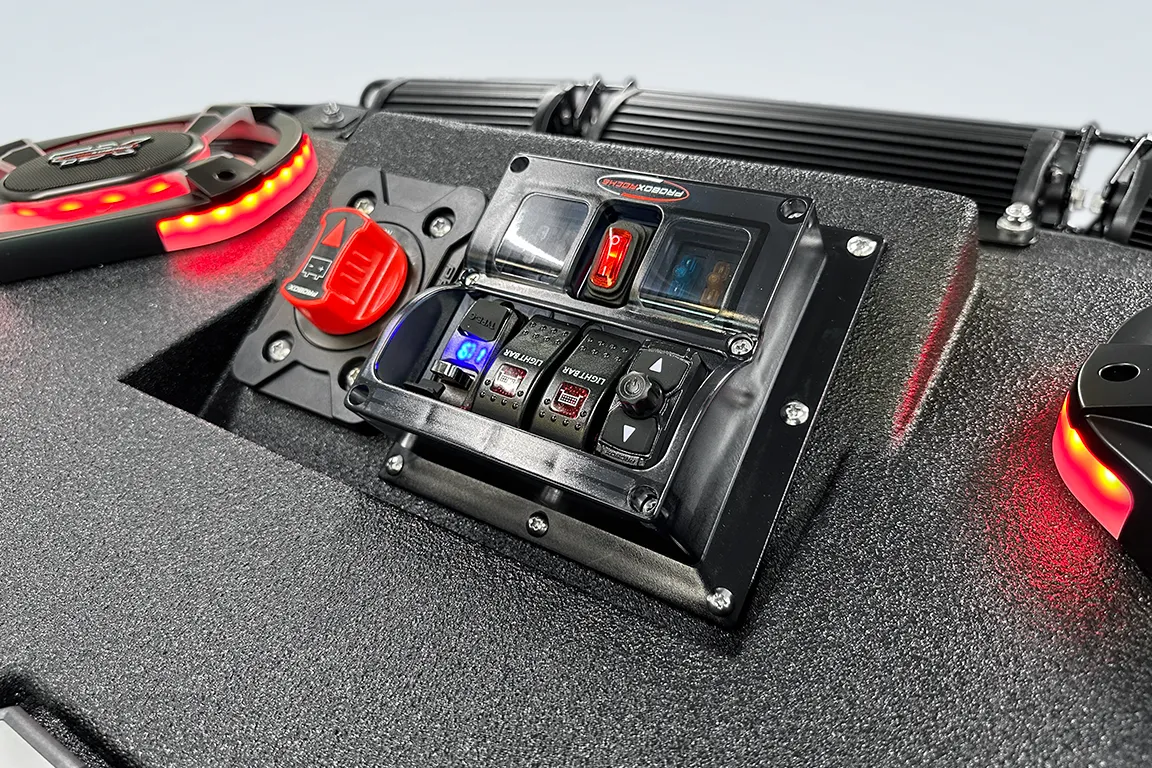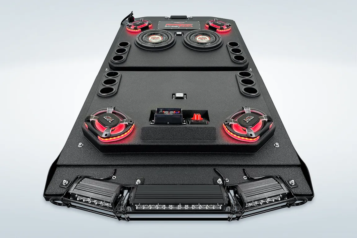 The ProBox 6x9 component speakers have been designed without a center pole behind the mid/tweeter. Instead, the mid/tweeter are suspended above the cone, making the 6x9 a true woofer with excellent bass response. This design also allowed us to mount the optional waterproof RGB LED circuit board behind the mid/tweeter. A reflective coating on the cone enhances the colors from the RGB LED circuit board, creating most impressive results.