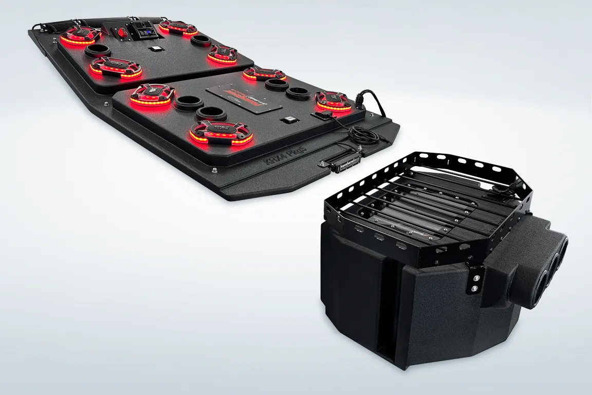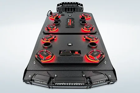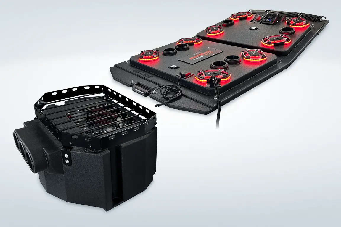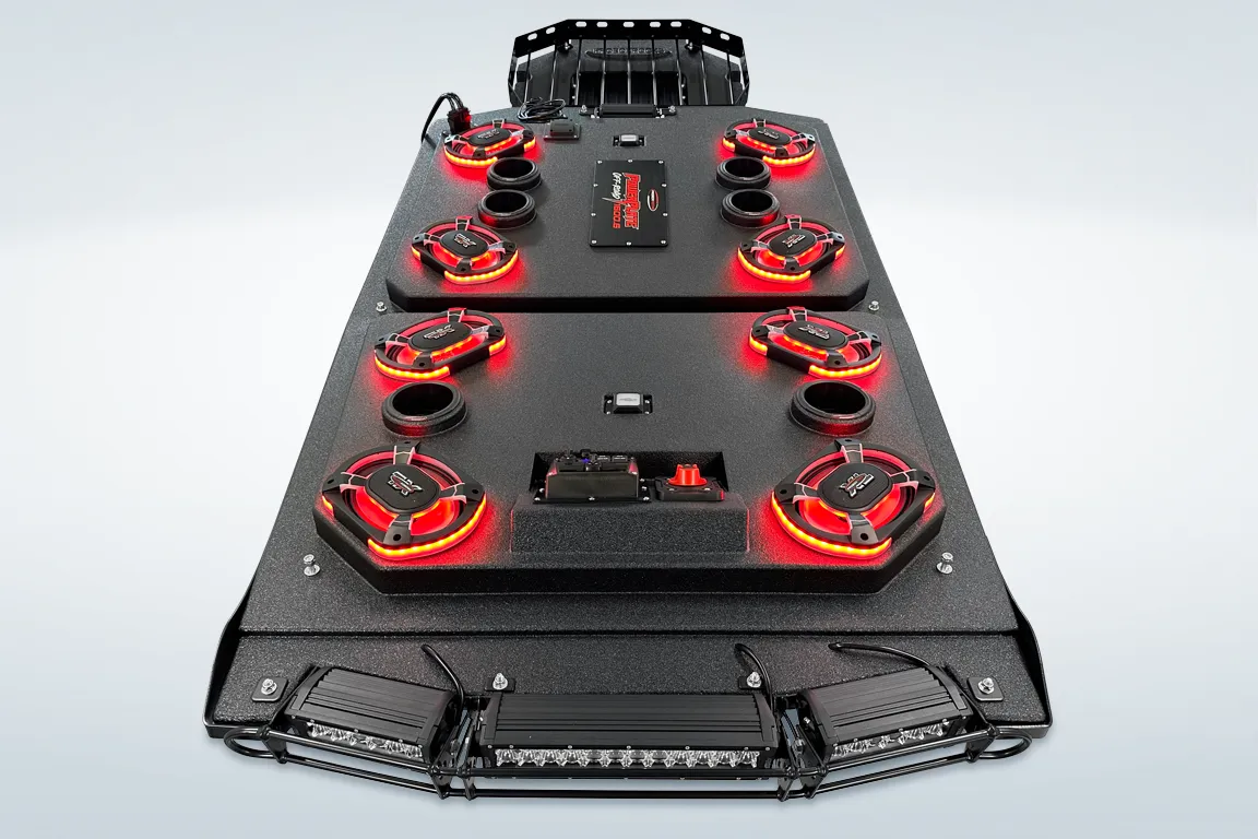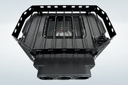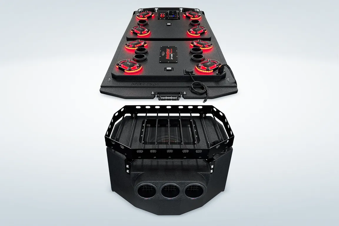 The ProBox 6x9 component speakers have been designed without a center pole behind the mid/tweeter. Instead, the mid/tweeter are suspended above the cone, making the 6x9 a true woofer with excellent bass response. This design also allowed us to mount the optional waterproof RGB LED circuit board behind the mid/tweeter. A reflective coating on the cone enhances the colors from the RGB LED circuit board, creating most impressive results.