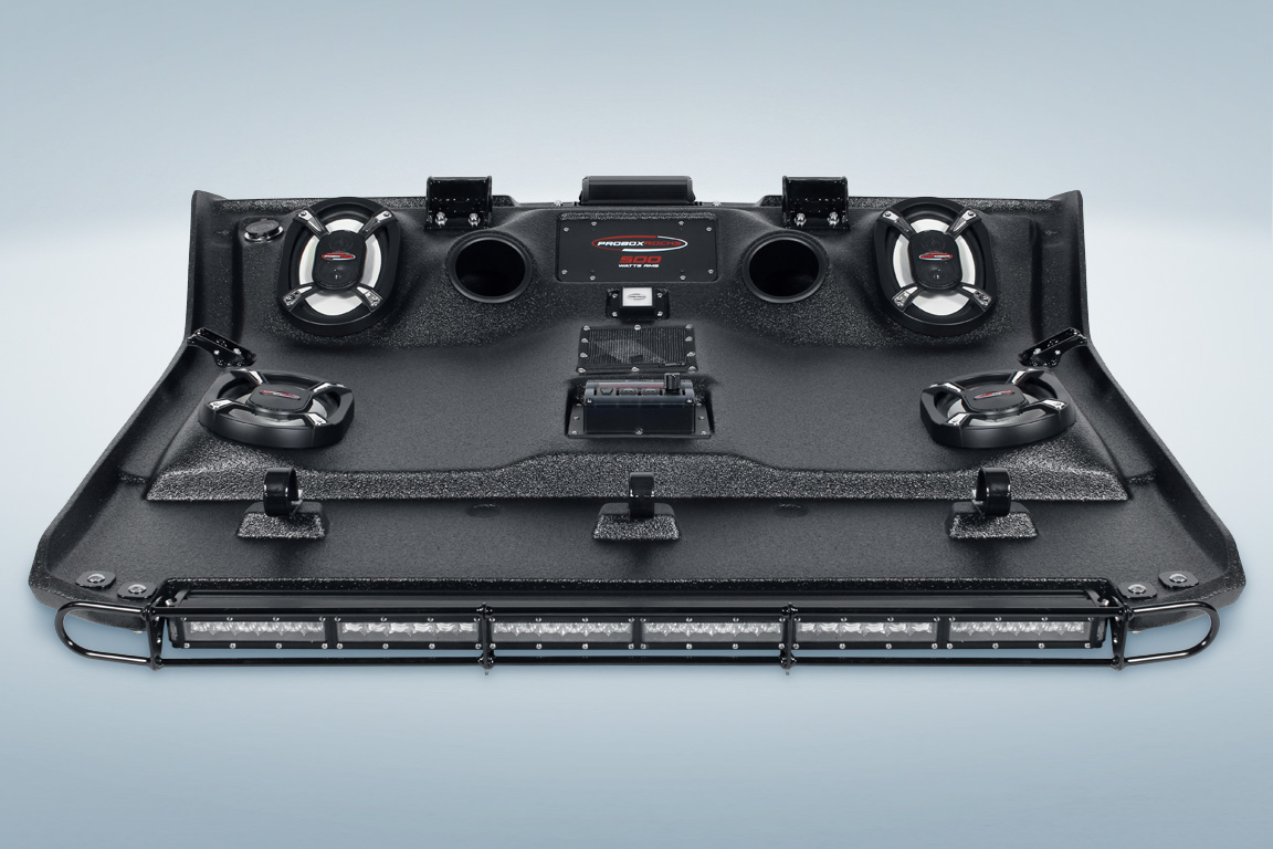 The ProBox 6x9 component speakers have been designed without a center pole behind the mid/tweeter. Instead, the mid/tweeter are suspended above the cone, making the 6x9 a true woofer with excellent bass response. This design also allowed us to mount the optional waterproof RGB LED circuit board behind the mid/tweeter. A reflective coating on the cone enhances the colors from the RGB LED circuit board, creating most impressive results.