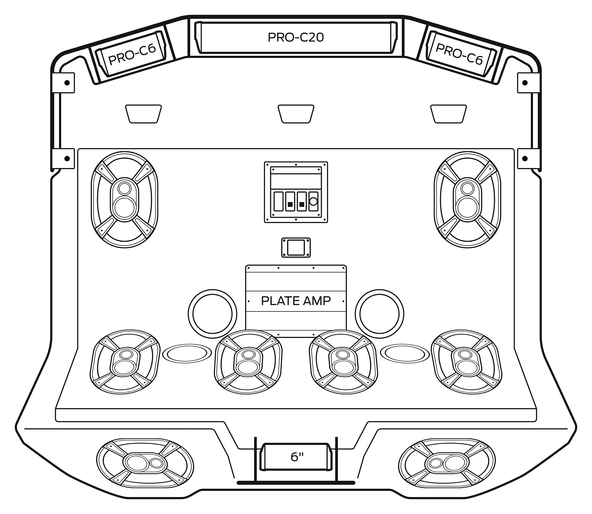 - 4-way high performance, high efficiency 6” x 9” speakers