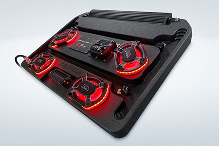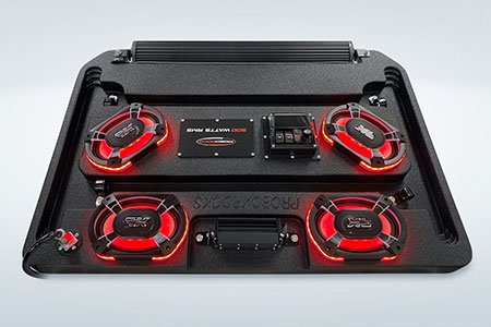 The ProBox 6x9 component speakers have been designed without a center pole behind the mid/tweeter. Instead, the mid/tweeter are suspended above the cone, making the 6x9 a true woofer with excellent bass response. This design also allowed us to mount the optional waterproof RGB LED circuit board behind the mid/tweeter. A reflective coating on the cone enhances the colors from the RGB LED circuit board, creating most impressive results.