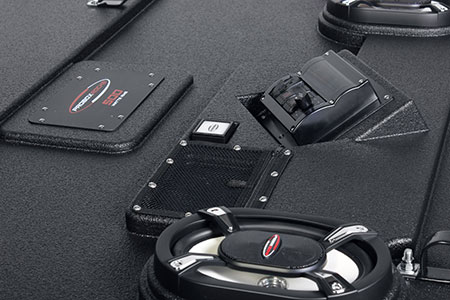 The ProBox 6x9 component speakers have been designed without a center pole behind the mid/tweeter. Instead, the mid/tweeter are suspended above the cone, making the 6x9 a true woofer with excellent bass response. This design also allowed us to mount the optional waterproof RGB LED circuit board behind the mid/tweeter. A reflective coating on the cone enhances the colors from the RGB LED circuit board, creating most impressive results.
