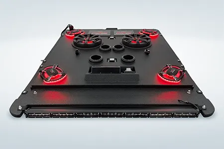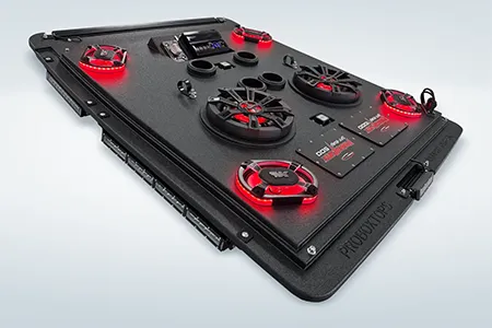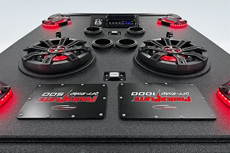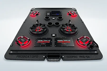 The ProBox 6x9 component speakers have been designed without a center pole behind the mid/tweeter. Instead, the mid/tweeter are suspended above the cone, making the 6x9 a true woofer with excellent bass response. This design also allowed us to mount the optional waterproof RGB LED circuit board behind the mid/tweeter. A reflective coating on the cone enhances the colors from the RGB LED circuit board, creating most impressive results.