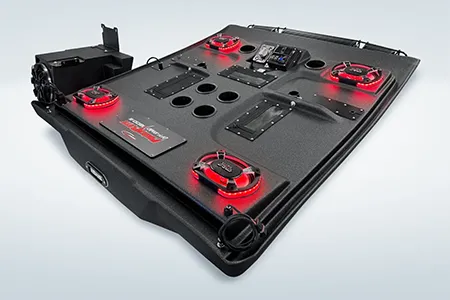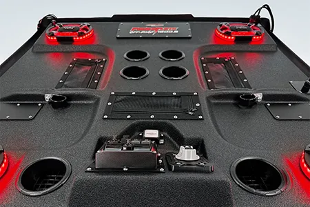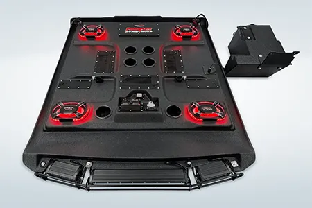 The ProBox 6x9 component speakers have been designed without a center pole behind the mid/tweeter. Instead, the mid/tweeter are suspended above the cone, making the 6x9 a true woofer with excellent bass response. This design also allowed us to mount the optional waterproof RGB LED circuit board behind the mid/tweeter. A reflective coating on the cone enhances the colors from the RGB LED circuit board, creating most impressive results.
