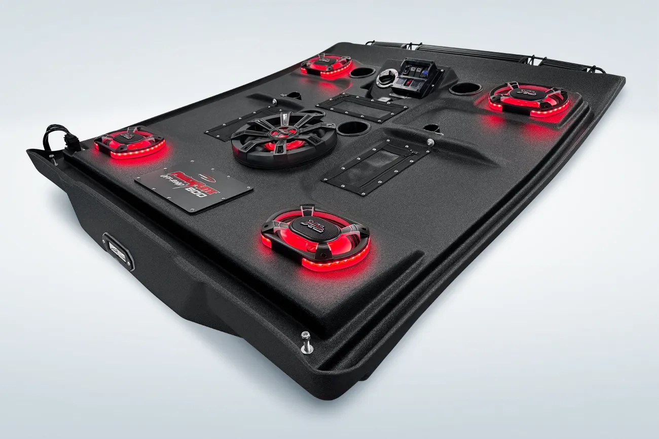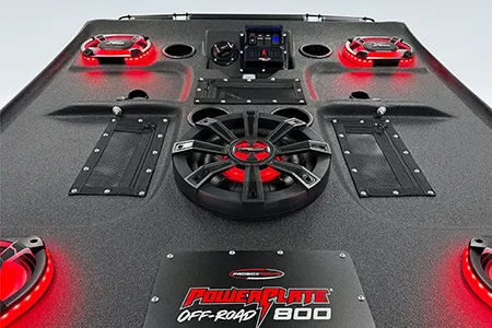 The ProBox 6x9 component speakers have been designed without a center pole behind the mid/tweeter. Instead, the mid/tweeter are suspended above the cone, making the 6x9 a true woofer with excellent bass response. This design also allowed us to mount the optional waterproof RGB LED circuit board behind the mid/tweeter. A reflective coating on the cone enhances the colors from the RGB LED circuit board, creating most impressive results.