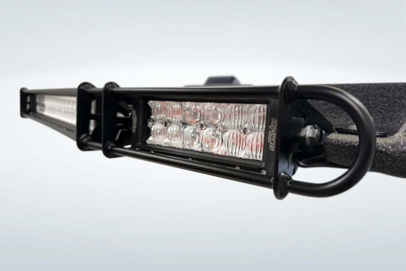 This photo shows an example of the beam spread of a tri-light LED configuration. Each LED bar features a double row of 5 watt Phillips LEDs. The flood part of the combo pattern delivers close range illumination, and the spotlight part delivers the extreme distance illumination. Click the image to enlarge.