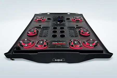 The ProBox 6x9 component speakers have been designed without a center pole behind the mid/tweeter. Instead, the mid/tweeter are suspended above the cone, making the 6x9 a true woofer with excellent bass response. This design also allowed us to mount the optional waterproof RGB LED circuit board behind the mid/tweeter. A reflective coating on the cone enhances the colors from the RGB LED circuit board, creating most impressive results.