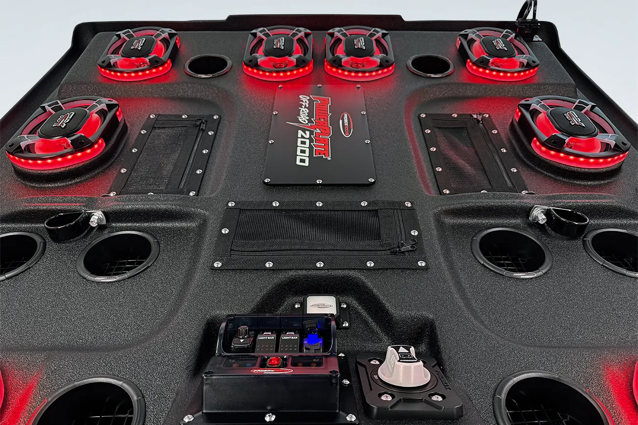 The ProBox 6x9 component speakers have been designed without a center pole behind the mid/tweeter. Instead, the mid/tweeter are suspended above the cone, making the 6x9 a true woofer with excellent bass response. This design also allowed us to mount the optional waterproof RGB LED circuit board behind the mid/tweeter. A reflective coating on the cone enhances the colors from the RGB LED circuit board, creating most impressive results.
