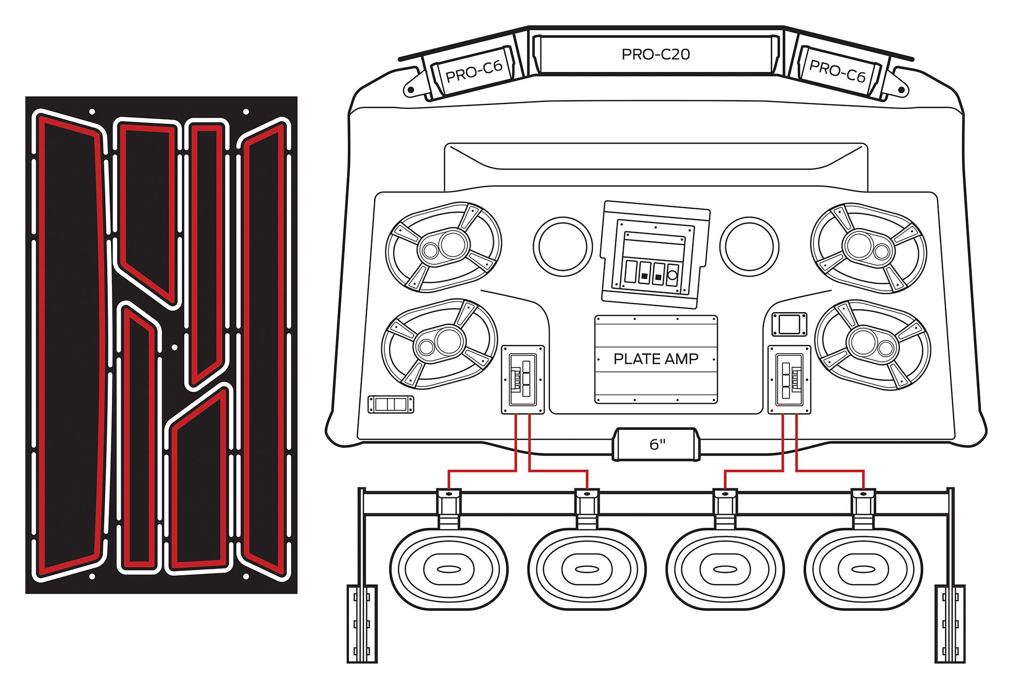 - 4-way high performance, high efficiency 6” x 9” speakers