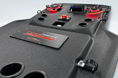 The ProBox 6x9 component speakers have been designed without a center pole behind the mid/tweeter. Instead, the mid/tweeter are suspended above the cone, making the 6x9 a true woofer with excellent bass response. This design also allowed us to mount the optional waterproof RGB LED circuit board behind the mid/tweeter. A reflective coating on the cone enhances the colors from the RGB LED circuit board, creating most impressive results.