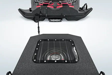 The ProBox 6x9 component speakers have been designed without a center pole behind the mid/tweeter. Instead, the mid/tweeter are suspended above the cone, making the 6x9 a true woofer with excellent bass response. This design also allowed us to mount the optional waterproof RGB LED circuit board behind the mid/tweeter. A reflective coating on the cone enhances the colors from the RGB LED circuit board, creating most impressive results.