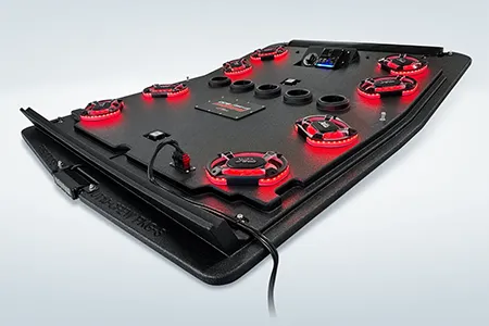 The ProBox 6x9 component speakers have been designed without a center pole behind the mid/tweeter. Instead, the mid/tweeter are suspended above the cone, making the 6x9 a true woofer with excellent bass response. This design also allowed us to mount the optional waterproof RGB LED circuit board behind the mid/tweeter. A reflective coating on the cone enhances the colors from the RGB LED circuit board, creating most impressive results.