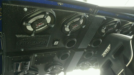 - (1) 800 W ProBox Plate Amp for the two 10" subs in a SSV subwoofer enclosure in the glove box, and (1) behind the seat (you can’t even hear these over the PRO-IIs)