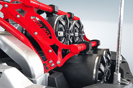 The solid aluminum mounting clamps adjust to fit bars from 1-1/2” to 2” in diameter, and rotate a full 360° for precise positioning of the speakers.